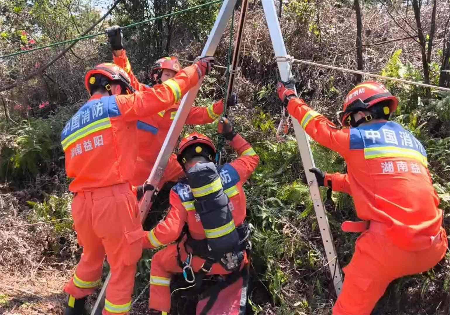 消防救援人员正在使用三脚架牵引系统垂降下井实施救援(单位供图)眼下正值春季踏青旺季,野外踏青、采摘野菜的群众逐渐增多,各类户外安全风险也随之攀升。为筑牢节前安全防线,益阳市消防救援支队强化执勤备战、深化安全宣传,全力守护群众生命财产安全。4月1日,该支队成功救援一名因采摘蕨菜不慎坠井的女子,及时化解安全险情。