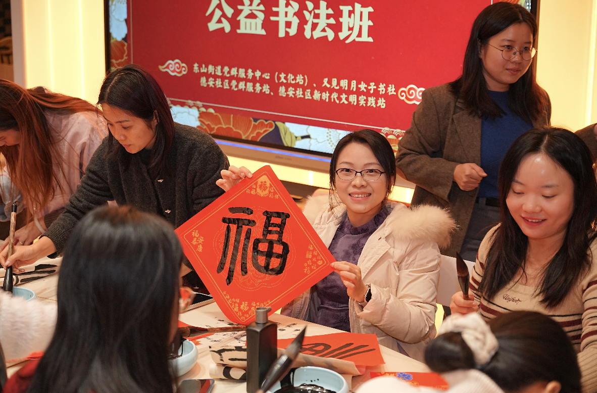 作为“广府味·幸福年”2026越秀新春系列活动的东山实践,本次活动特邀非遗传承人解析“五福”文化内涵,从《尚书》“五福临门”典故到广府年俗,解读福文化的前世今生;设置作品展示空间,优秀学员作品将参与社区文化展;活动公益免费,在新河浦邻里中心这个充满老广韵味的空间里,和街坊姐妹围坐挥毫,聊聊家常、切磋笔法,让社区的温暖在笔墨间流转。